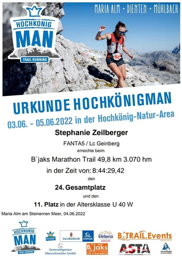 Beim Hochkönigman Trailrun am 04.06.2022 haben gleich zwei Power Ladys vom LC Geinberg teil genommen und mit einem super Ergebnis gefinished: Speed Trail - 21,7km / 1277 hm W30 25. Zeilinger Tina in der Zeit 3:09:11 B´jacks Marathon Trail 49,8km / 3070hm W40 11. Zeilberger Stephanie in der Zeit 8:44:29,42