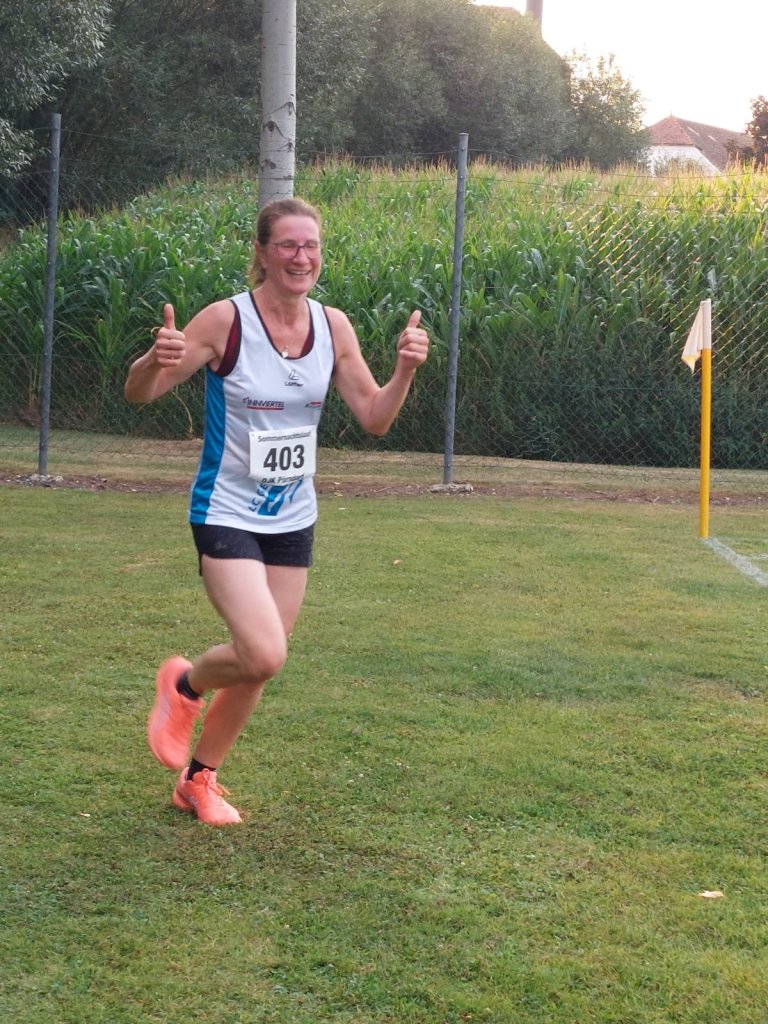 Die Wolken am Himmel ließen Regen oder Unwetter vermuten, doch es blieb trocken, ohne Unwetter. Um 19.00uhr wurde der 7350m Hauptlauf gestartet, eine markierte Kiesstrecke vorbei an Feldern und Höfen vom Sportplatz ausgehend.