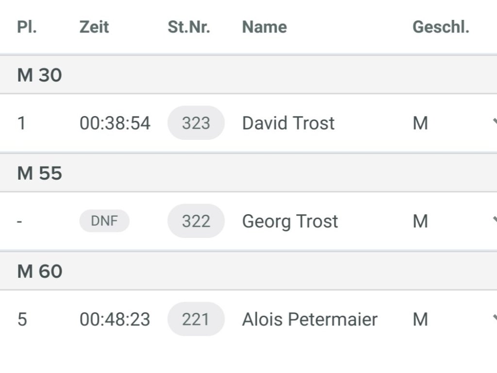 Ergebnisse vom heutigen Marktlauf in Ruhstorf: