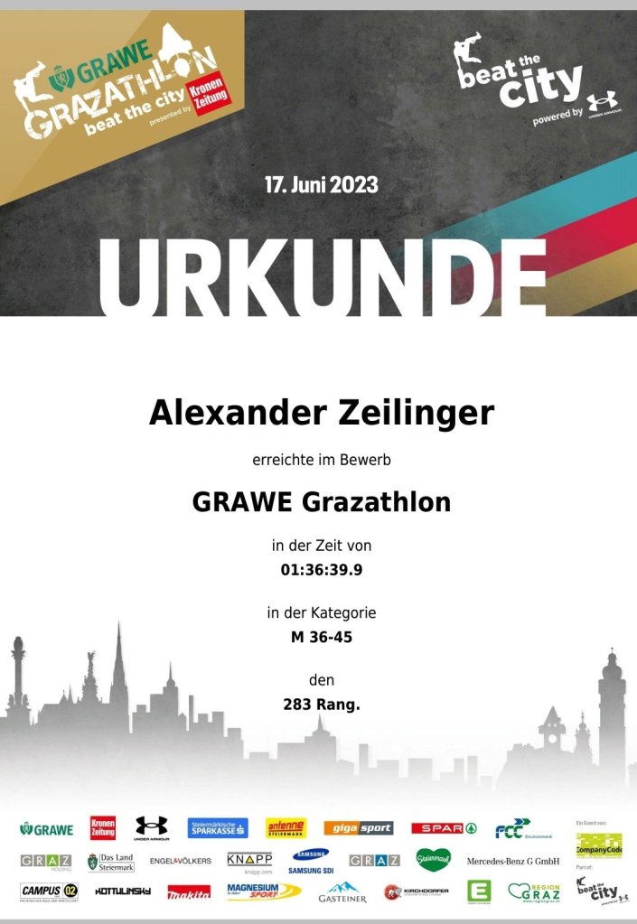 Unser Alex hat am Samstag beim Grazathlon teilgenomnen und war von der Veranstaltung geflashed: „… soeben nach Haus gekommen vom Grazathlon. Wahnsinns Veranstaltung und Top organisiert. Und das trotz Teilnehmerrekord von über 4500 Startern und mitten in Graz! Hut ab! 🏃🏼🏃🏼🏃🏼 😃“